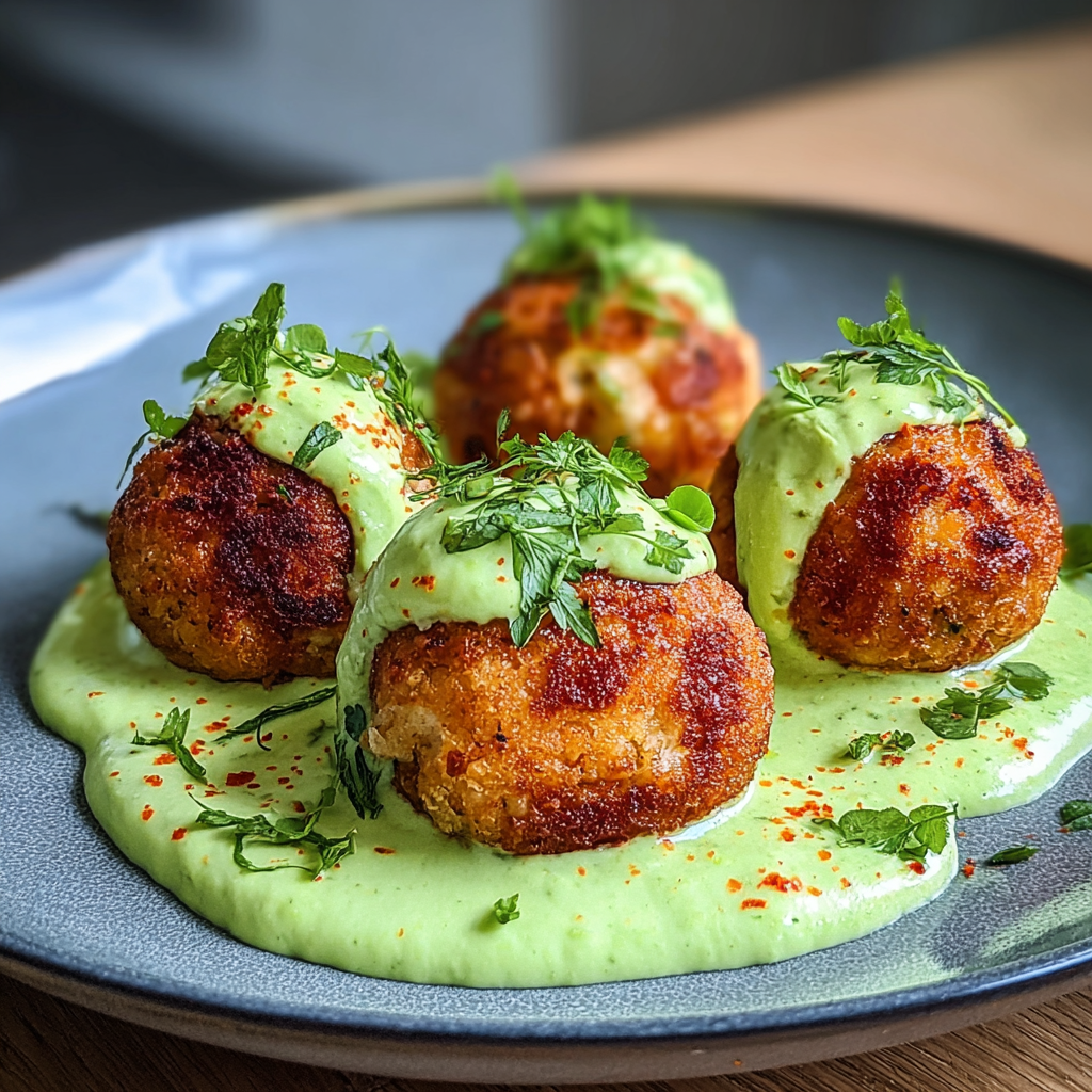 Salmon Balls with Creamy Avocado Sauce