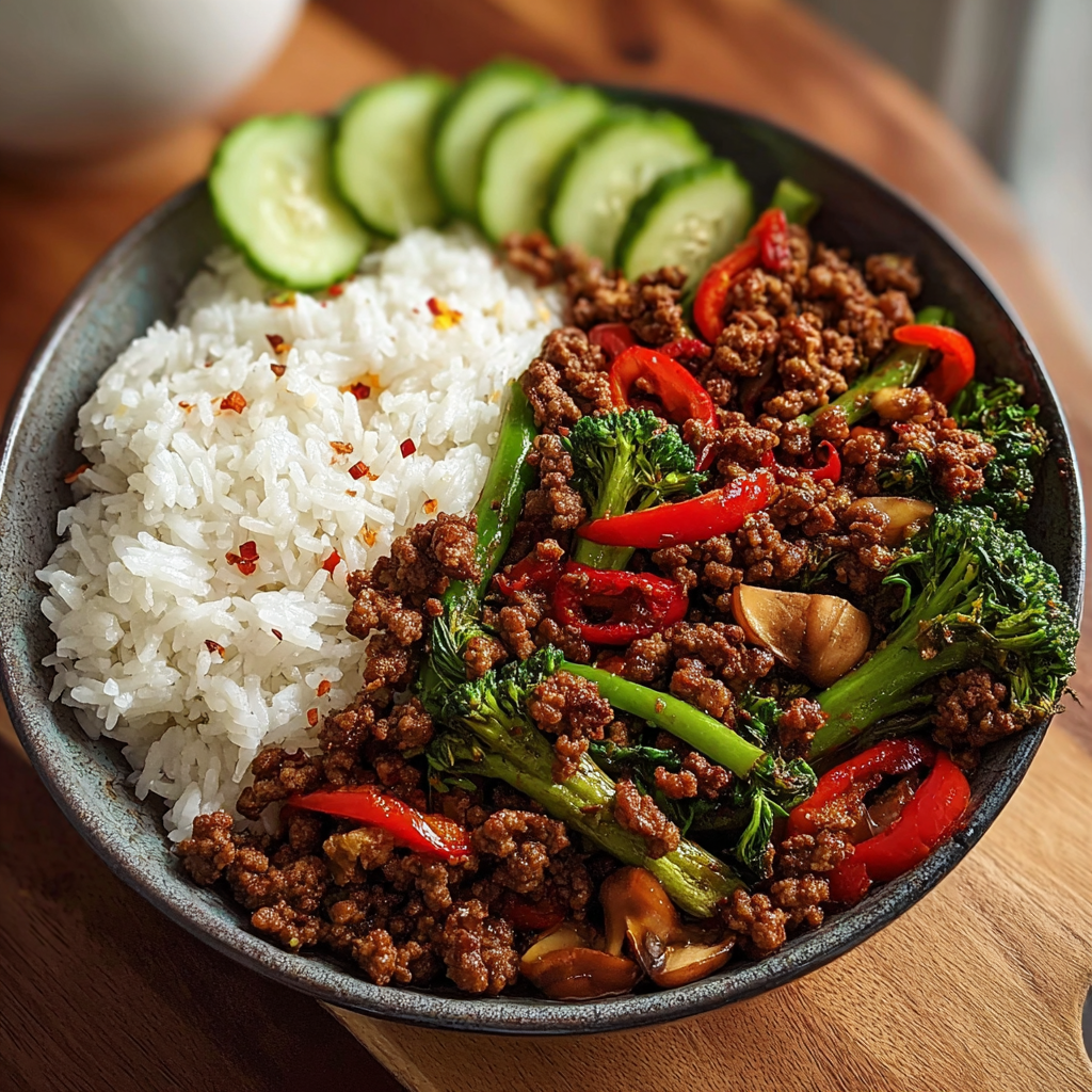 Spicy Fried Minced Beef with Garlic Vegetables