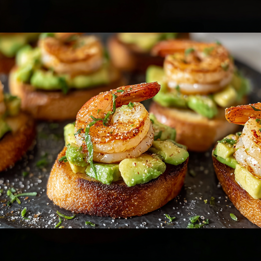 Shrimp Crostini with Garlic and Avocado